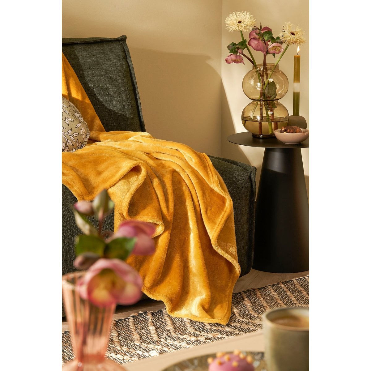 Zoek je een heerlijk zacht en warm dekentje? Voortaan kruip je elke avond met een goed gevoel onder de Famke fleece plaid van Mica Decorations. Het gele fleece plaid is gemaakt van polyester en is H180 x B130 meter groot. Met dit dekentje kom je zeker de koude wintermaanden goed door!